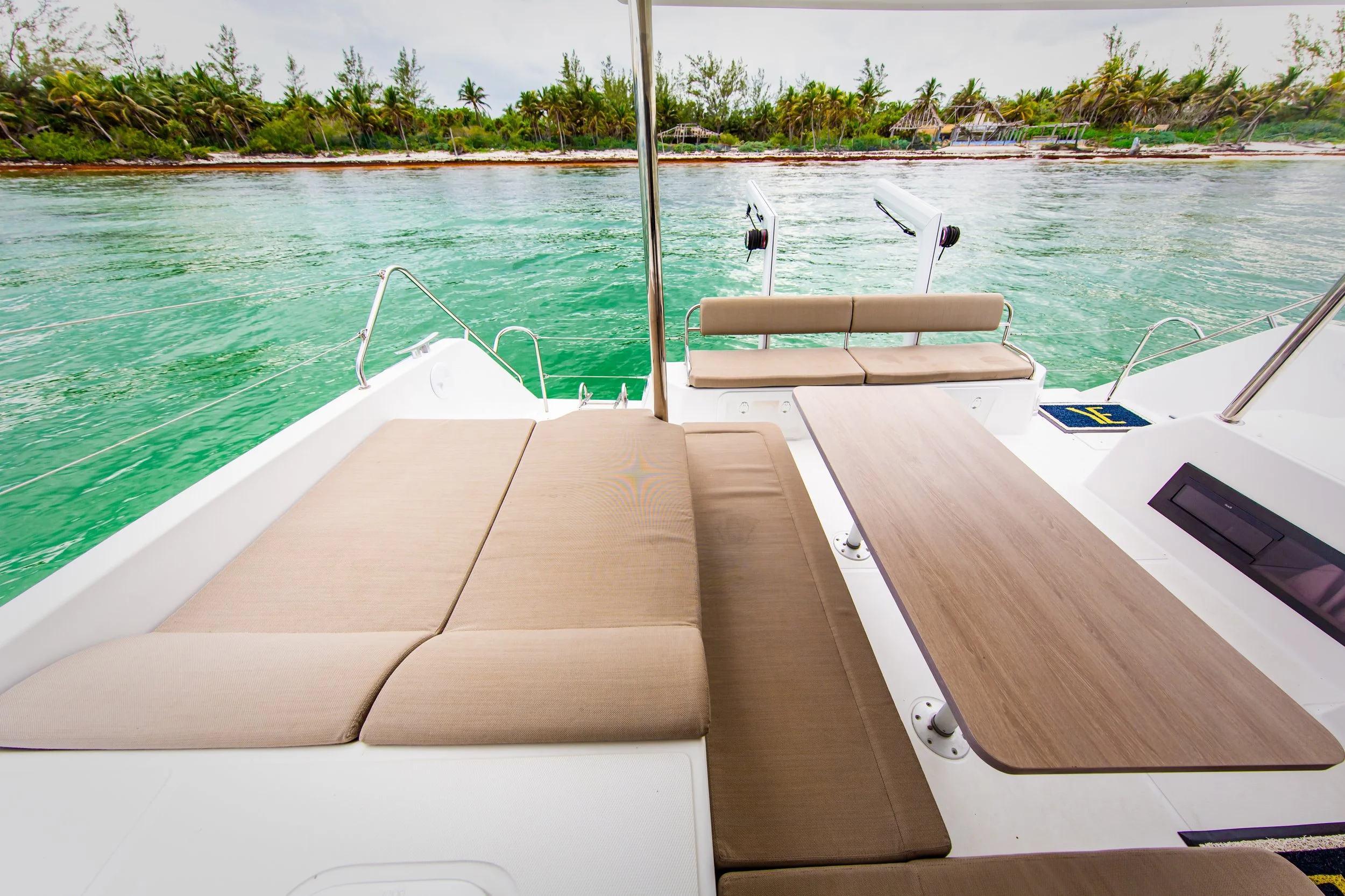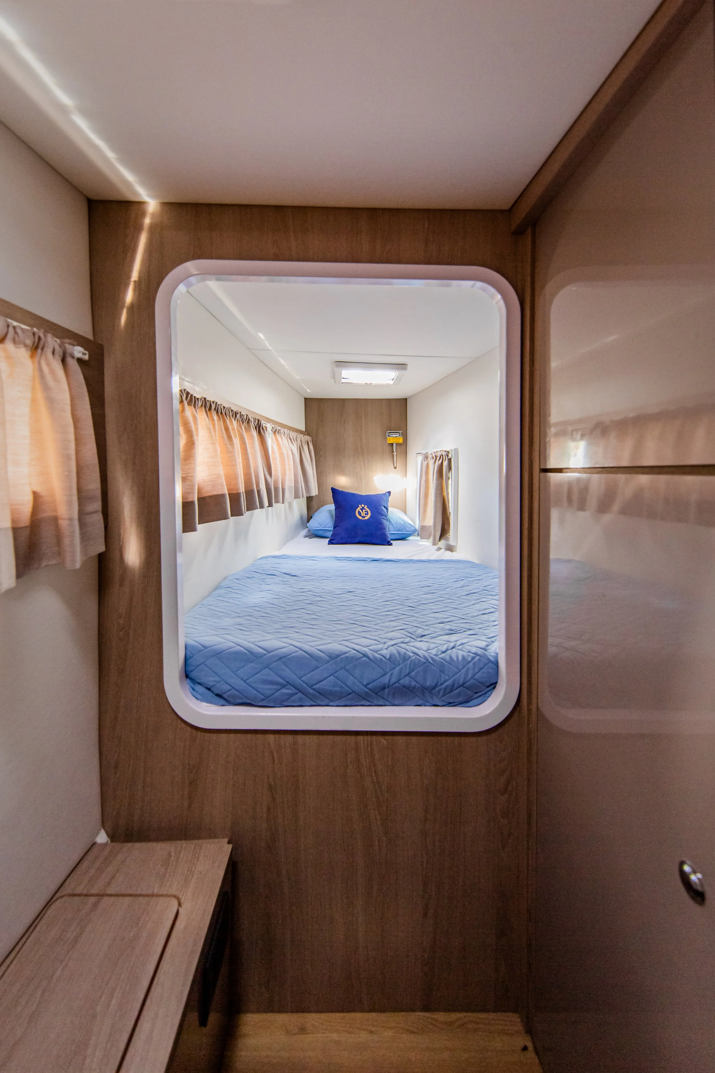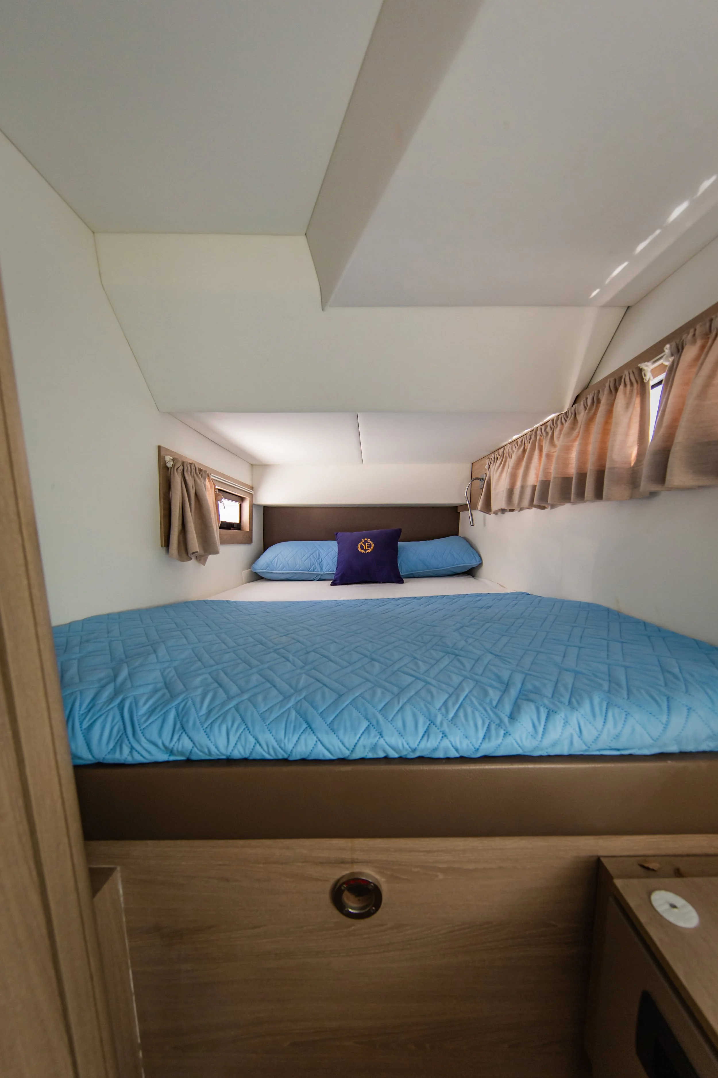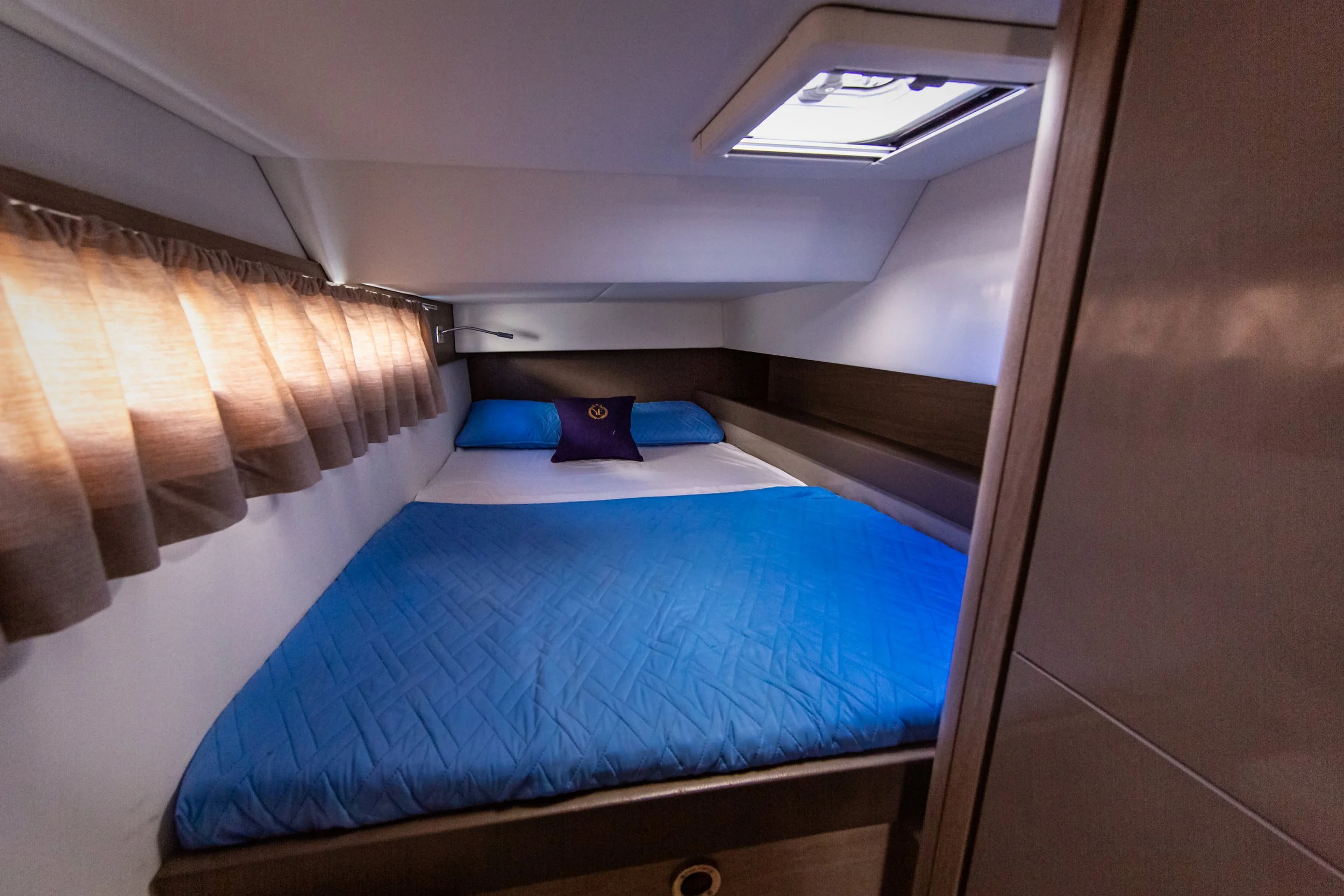 At the bow, you'll find a spacious area, perfect for sunbathing while you indulge in refreshing drinks and soak up the radiant sun and gentle breeze. As you move towards the stern, a generous lounge and living area provide an idyllic setting to unwind, serenaded by the soothing sounds of the sea.