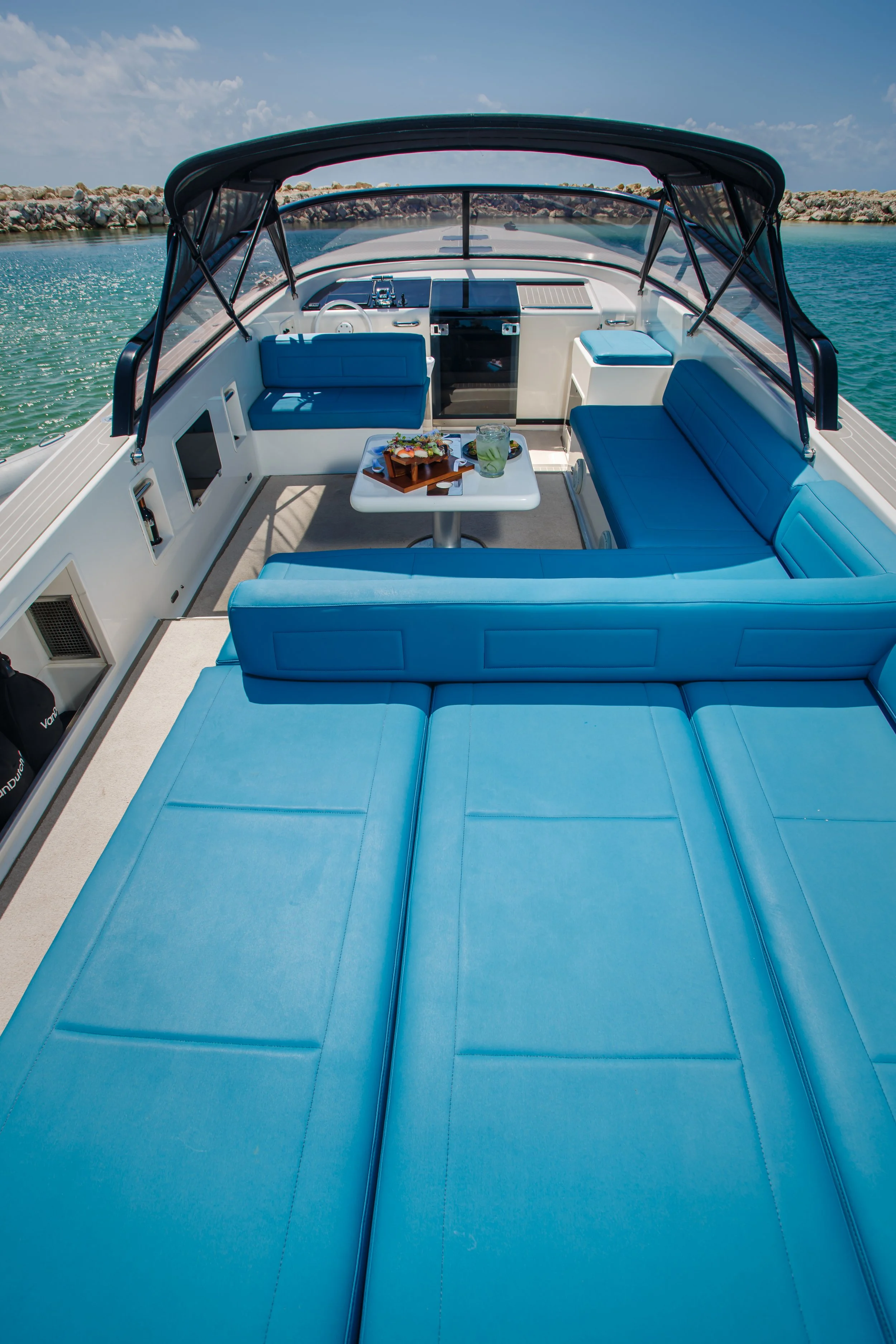 Inside, the interior design has been meticulously tailored to ensure the utmost comfort for up to 8 passengers. This sporty yacht offers a distinctive and unforgettable experience, where sophistication meets adventure on the high seas.