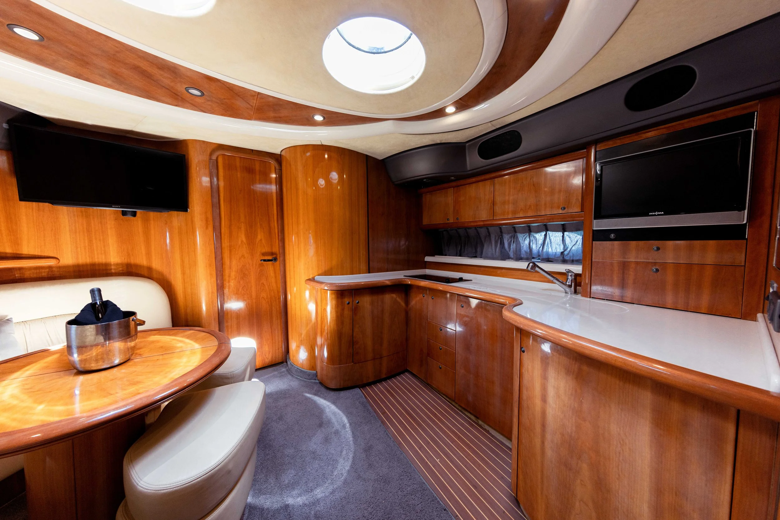 The Cranchi Mediterranee 50 is your ultimate travel companion, defined by its distinctive character. With its robust power and cutting-edge design, this luxury yacht boasts two spacious cabins, two well-appointed bathrooms, a fully equipped kitchen, and a comfortable living room.